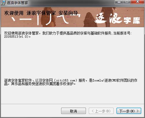 下载帮助:点击逐浪字体管家软件立即下载,解压后安装,一直点下一步,直到安装完成,再打开使用。