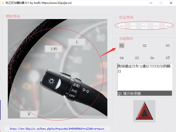 考驾照的时候科三的灯光考试也是非常非常重要的的,一个灯打错了就得重考,非常多的人都在使用驾考学员都在这场灯光考试中不小心打错了,没有考过,非常可惜,所以为了让大家随时都能更好的练习科三灯光,小编专门带来了这款科三灯光模拟器软件,该软件可以根据操作状态显示闪烁相应灯光,还可以自定义题目,正确全部答完题目后,会弹出上次答错的内容!