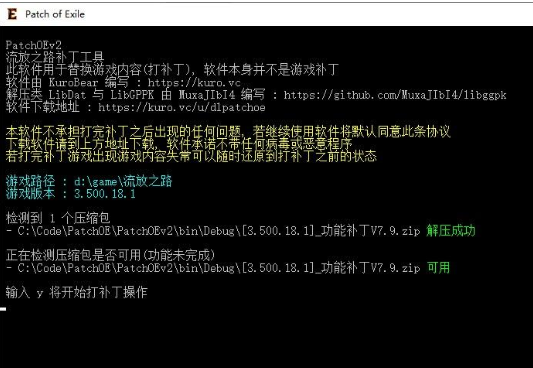 支持自动注入补丁文件,并且还能自动备份GGPK文件,在使用错误版本的补丁之后不需要重新安装游戏覆盖还原GGPK文件即可。