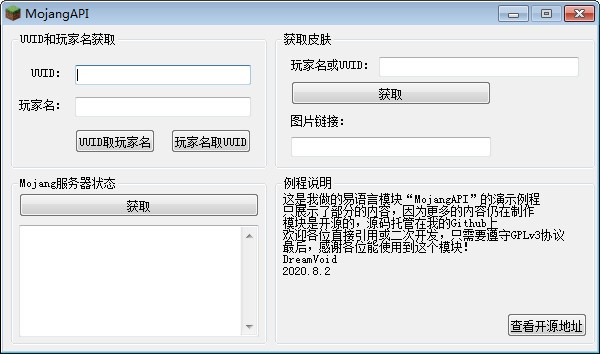 如果需要可执行的例程,请使用MojangAPI_example.exe