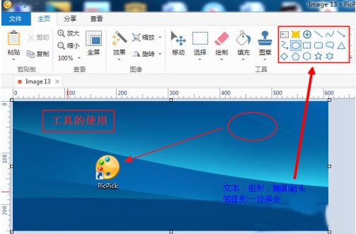 3、在桌面上截下一个图。我们来看看如何使用它的工具。如下图;