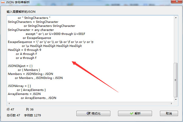 2、支持解析纯文本,并统计出行列,字符数。提供格式化JSON。