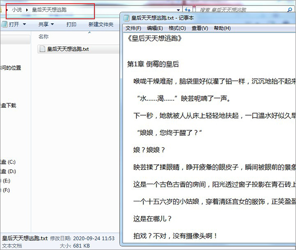 4、点击下载,稍微等待一下,桌面将会显示一个“小说”的文件夹,打开即可浏览小说内容。