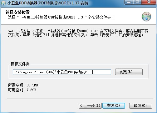5、选择安装位置,默认C:⁄Program Files (x86)⁄小丑鱼PDF转换成WORD;