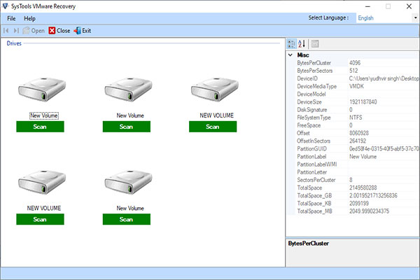 该软件能够修复损坏的vmdk文件。按照下面提到的步骤从虚拟驱动器分区恢复丢失的数据。