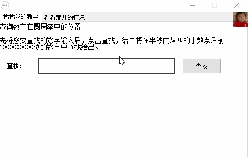 例如您输入926这三个数字,那么查找后的结果将是5,表示926出现在π的小数点后第5位。