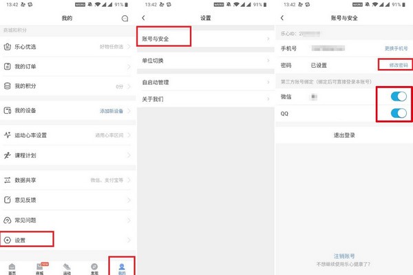 3.点击我的->设置->账号与安全->设置密码(修改密码),设置你自己记得住的密码