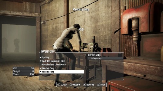 喜欢辐射4游戏的玩家们应该都非常喜欢这款游戏的末日生存玩法,本次带来的就是一个辐射4的魅力结婚戒指MOD,使用后玩家就能在游戏中编辑两个戒指,只戴一个能使其+10魅力,戴两个自然就能+20魅力啦,非常简单的作弊模式,分享给大家。