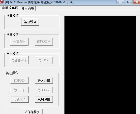nfc reader专业版采用了更加直观非常方便的界面设计,新增了FUID卡、CUID卡、UFUID卡写卡功能,还支持自动识别复制卡,免,一键读取内容,非常便捷,此外还增加了格式化功能,可以一键清空卡内数据,还原出厂状态,由于程序采用了加壳技术,注意使用前退出杀毒软件哦~