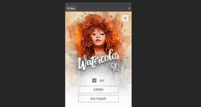 FX-照片效果工具水彩 FX 从你的图像创建一个逼真的水彩插图, 只需一个点击。最合适的是肖像, 物体图像和景观等来源。