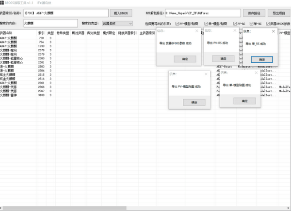 BF005读取工具专为是CF游戏制作的武器模型提取工具,能够帮助用户将CF游戏中的所有武器的贴图、参数、渲染文件全部提取出来,再利用其它软件进行修改替换,支持对CF现有武器进行搜索,可以达到自制MOD的效果,是非常多的人都在使用人用的一款简单易用的软件。