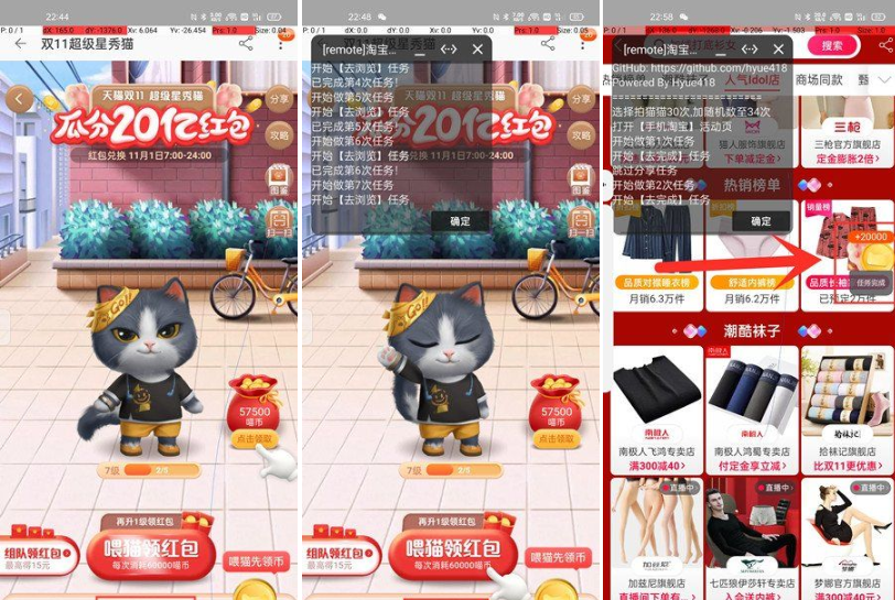 双11养猫活动自动化脚本防检测针对淘宝天猫的双十一特惠活动打造,双十一的养猫活动任务非常的繁琐枯燥,使用这款工具能够让用户轻松获取红包活动攻略,让大家分分钟全额完成奖励刷喵币,四分钟就可以刷25W喵币,每天参与云养猫,瓜分20亿现金红包大奖。