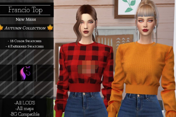 模拟人生4纯色网格现代上衣MOD能够为喜欢模拟人生4的小伙伴们带来一件新的服装外观,补丁的作者在游戏中制作了很好看的上衣,衣服设计的很时尚,适合女性人物角色穿着,较短款的样式,包含纯色和网格的颜色款式,玩家可以自行选择,效果如下图所示。
