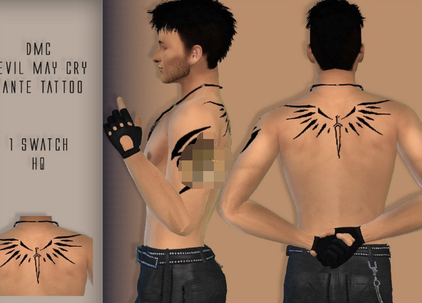 模拟人生4中最开始玩家需要通过“捏脸系统”进行角色的创建,自行调整细节来创造属于自己的游戏角色,现在为大家分享的是专为喜欢模拟人生4的玩家们的打造的模拟人生4鬼泣纹身MOD,使用后能够给人物角色添加非常多的人都在使用人用的一款纹身,纹身很经典,是但丁的款式,非常帅气。