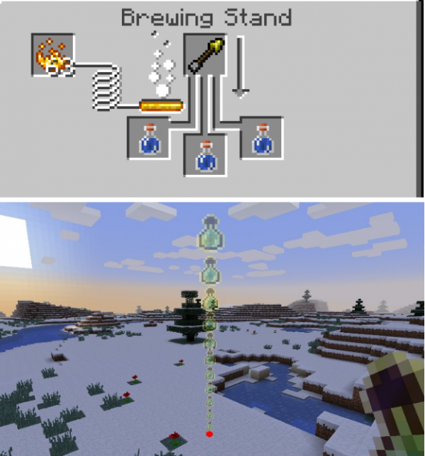 1、增加了一种名为“瞄准药水”的药水,它能够显示你扔雪球,末影珍珠,经验瓶,鸡蛋的投掷路径和目的地;