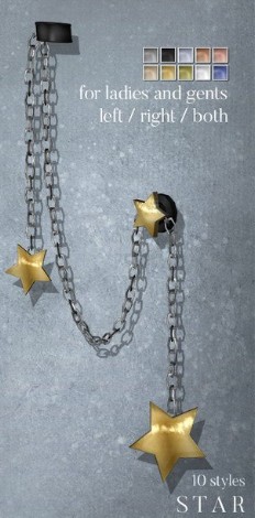 模拟人生4星星铁链耳环MOD是非常独特的一个模拟人生4的饰品添加mod,玩家使用补丁之后就能在游戏中获得非常多的人都在使用人用的一款非常漂亮的耳饰,耳饰设计得很时尚,是很有个性的链条耳环,上面有星星的装饰吊坠,制作得很精致,具体可以参考下面的图片。
