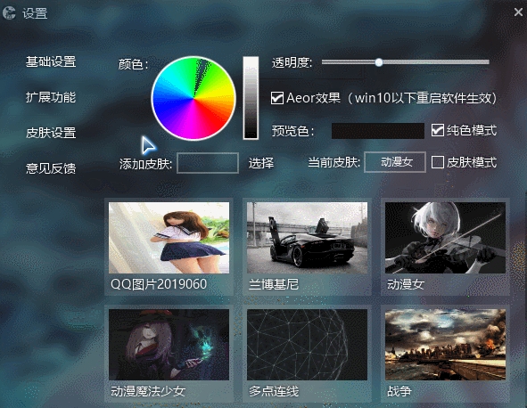 5、右下角设置,可自定义皮肤、扩展软件(添加扩展文件放在根目录下“扩展”文件夹内,打开设置勾选即可)