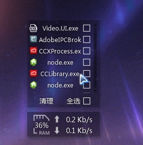 2、右击弹出关闭软件列表,选择后点击清理即可