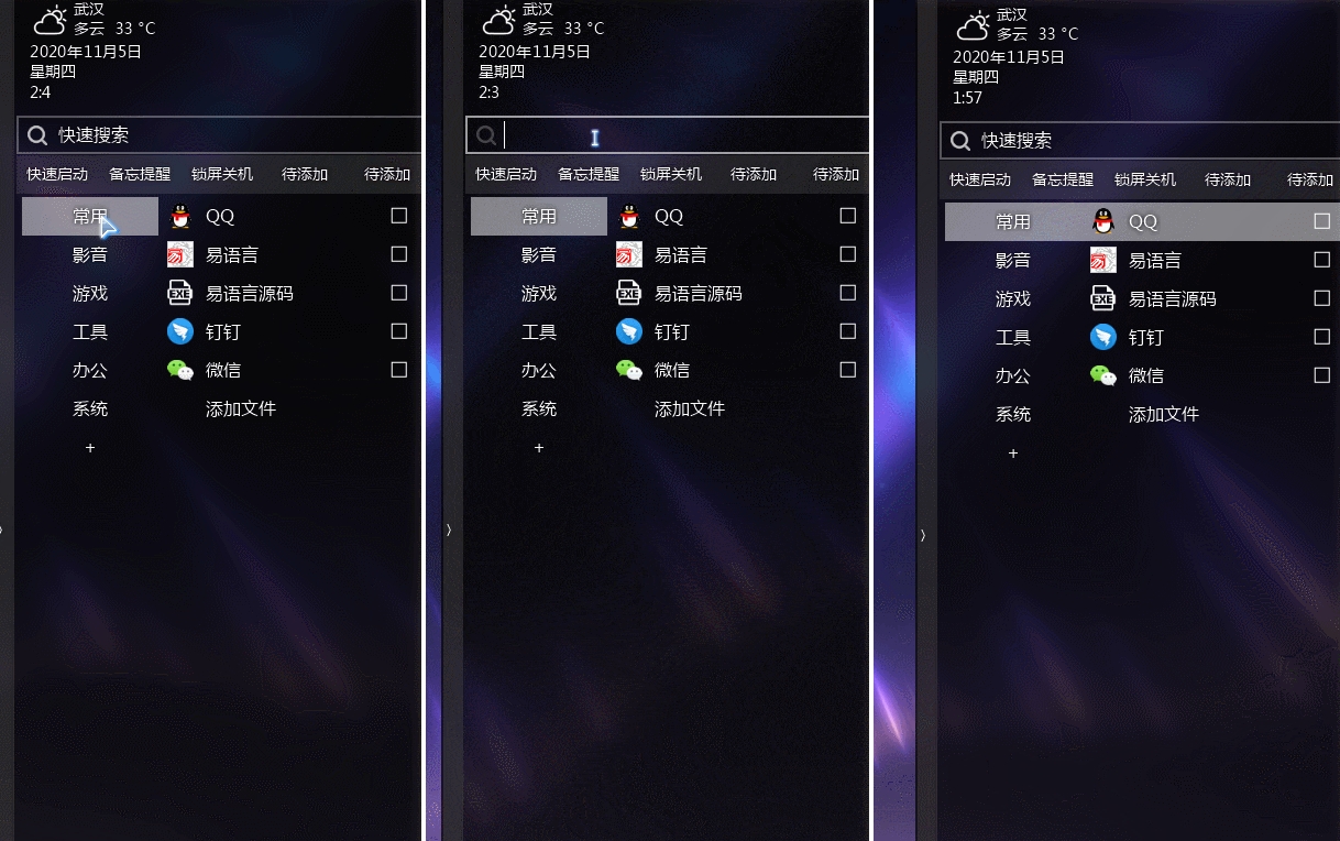 1、快速启动、主打界面缓动
