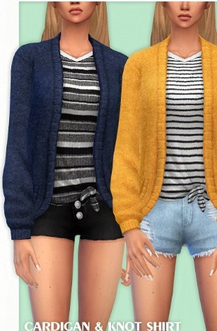 模拟人生4女性衬衫条纹短袖MOD,喜欢休闲简约穿衣风格的玩家们可以试试,作者在游戏中制作了一件条纹图案的短袖上衣,外搭还有一件毛衣衬衫,一套穿起来非常日常,简单舒适,具体上身效果可以参考下图,要是觉得喜欢的话可以按照下方使用方法操作安装进游戏哦!