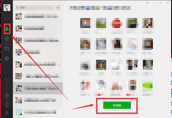 5.群发微信群/好友消息前,请先点击微信客户端的通讯录,然后选择某一个好友/群(可以接着某个好友位置发送),然后再切换到聊天界面