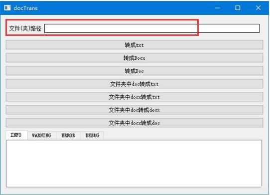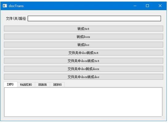 docTrans支持doc、docx转txt(utf-8格式)doc和docx相互转换将文件夹中的文件批量转换,对于有需要的用户们来说是一个非常非常实用的Doc格式转换器,使用方法具体的步骤小编都在下文做了详细的图文介绍,非常简单,将文件拖入后点击相应的按钮就可以,欢迎下载使用~