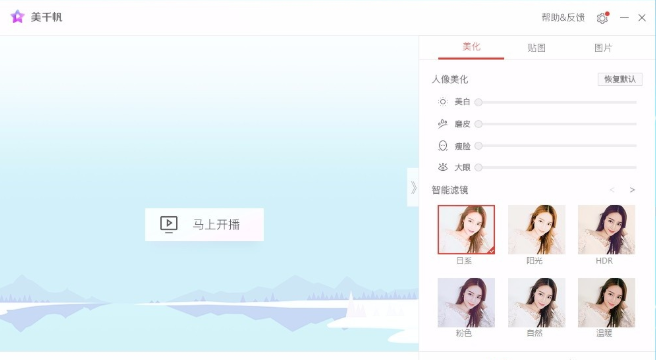 美千帆直播伴侣可以在主播直播的时候对直播视频进行美颜美化,现在直播行业非常的火爆,非常多的人都在使用主播都通过直播来进行娱乐互动或者作为工作,这款软件为美千帆直播平台主播提供了很强大的美颜功能,还支持在直播中添加特效和贴纸图案等,让直播更加生动。