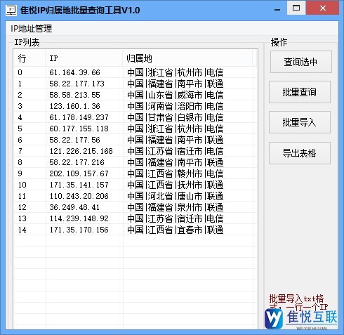 - 软件名称隹悦IP归属地批量查询工具 v1.5下载