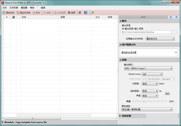 Pazera Free WMA to MP3 Converter 支持WMA和MP3格式的文件之间相互转换,软件占用内存小,但功能强大,可以帮助用户快速批量转换将WMA文件,同时能够自定义设置文件的参数并对其进行剪辑处理,转换的速度很快,过程中不会损坏文件的音质。