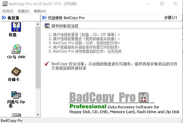 下载帮助:点击BadCopy pro(附注册码)软件立即下载,解压后安装,一直点下一步,直到安装完成,再打开使用。