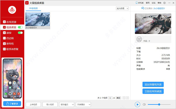 3、下载成功之后,可在左侧的视频桌面中查看并应用于桌面;