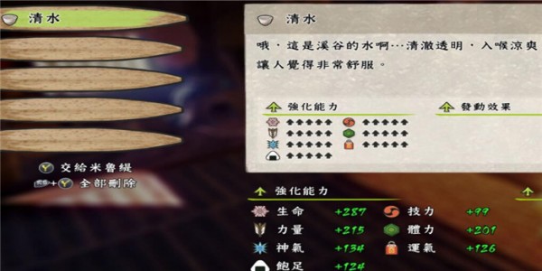 天穗之咲稻姬是以日式农场为主题的建造类角色扮演游戏,玩法内容十分丰富,游戏元素也非常多元化,非常多的人都在使用玩家都非常喜欢,今天带来的这款天穗之咲稻姬增加清水食物特效MOD就是一个专为该游戏制作的功能性补丁,作者修改了清水的加成,新添了清水食物特效,还上调了连个武器的攻击力至100,喜欢的玩家可自取。