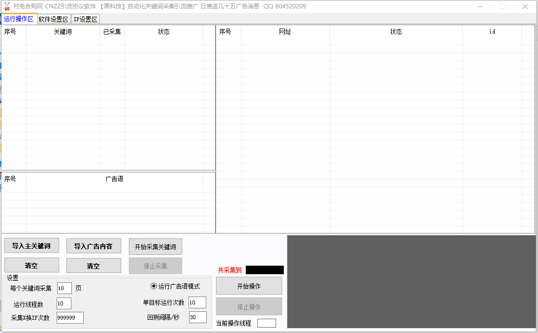 cnzz引流软件是针对站长所开发的非常多的人都在使用人用的一款引流软件,所引流的人群都是站长相关的流量,比较有消费群体的人,比如您是做网站优化行业的服务,可以利用软件采集SEO相关关键词,比如网站优化,站长之类的关键词,因为非常多的人都在使用网站都需要给自己的排名做优化,这个市场也是比较大的,而且这些都是精准的流量,我们只需要把这些关键词采集到手然后软件自动推送给他们广告即可,广告自动化推送到他们网站的站长统计里面(CNZZ)当他们进入统计即可看到我们软件所留下的广告,有意自然会主动联系您,达到引流效果!