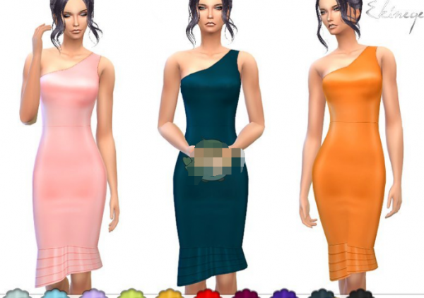 模拟人生4不对称荷叶边皮质长裙MOD,非常多的人都在使用人用的一款比较简约气质的女性长裙,版型做的是修身版,能够很好的勾勒出女性身材的S型曲线美,比较特别的地方是它的肩部设计,采用了不对称的单边挂肩款式,还有裙摆做了荷叶边设计,上身很显气质,喜欢的玩家可以入手哦~