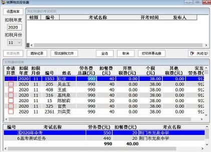 4.增加了核算税后劳务费的功能,可以将多次考试的劳务费汇总并扣除个人所得税后一起发放,一个月不管组织多少次考试,只需要发一次劳务费;