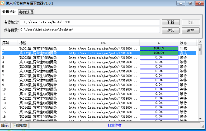 懒人听书有声专辑下载器是用C#写的一个有声小说下载工具,借助该软件您可以将自己想听的小说专辑内容都放在软件中,进行一键批量下载,下载速度十分快速,您还可以自定义自己的下载地址,里面有多种选项都是支持自定义的,可根据需求自由设置哦,非常非常方便,喜欢听书的朋友们不要错过哦!