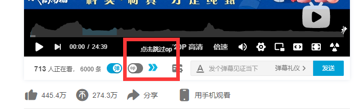 对于一些op在中间的番剧,可以将自动跳过关掉,关掉后会出现手动跳跃开关