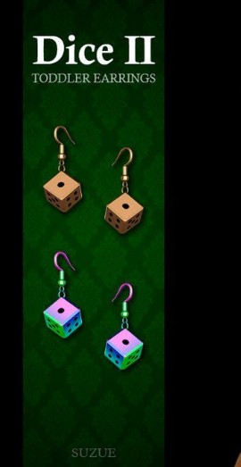 模拟人生4婴儿可爱筛子耳环MOD是模拟人生4的饰品添加mod,补丁的作者专门为游戏中的婴儿角色制作了非常多的人都在使用人用的一款新的饰品,玩家使用之后就能获得好看的耳环饰品,这款耳环上面带有一个骰子吊坠,造型十分独特,看起来很有个性,包含多种颜色,有纯色的和彩色的,装饰效果都还不错~