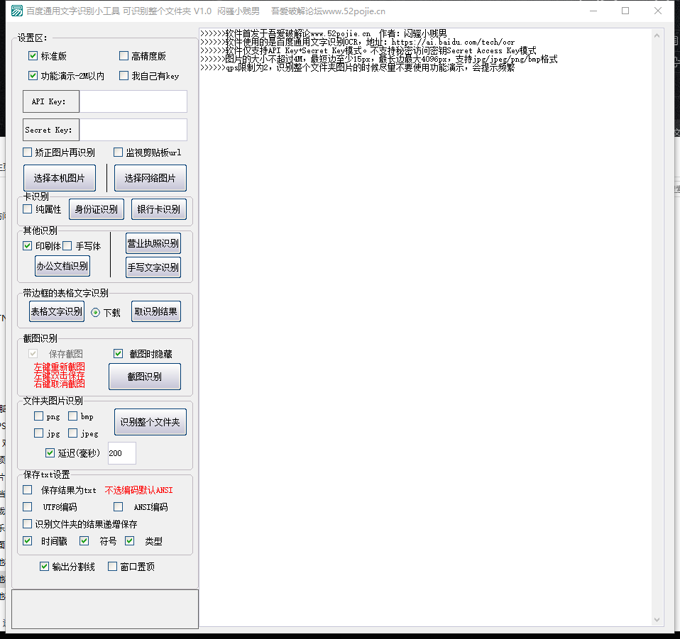 支持文件夹中4种图片格式识别(建议使用自己的key)