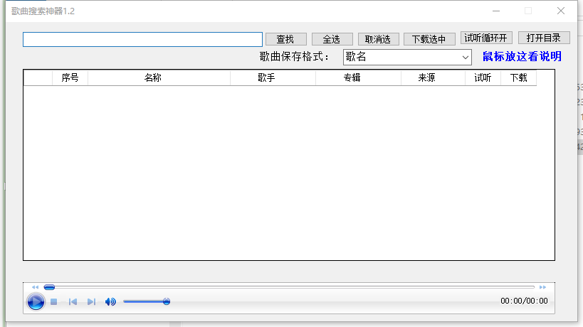 下载帮助:点击歌曲搜索神器软件立即下载,解压后安装,一直点下一步,直到安装完成,再打开使用。