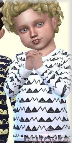 模拟人生4幼儿白天夜晚上衣MOD,作者在游戏中添加了一件适合儿童角色穿着的小衣服,款式比较简约,印花图案有点像几何连线的连绵起伏的小山峰,具体上身效果可以参考下文图示,有两种颜色,分别是黑色和白色,作者给它们设定为白天和黑夜,喜欢的玩家不要错过哦~