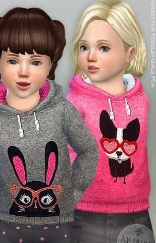 模拟人生4幼儿可爱动物连帽卫衣MOD,作者在游戏中添加了一件适合儿童角色穿着的连帽卫衣,有多种款式可以选择,具体上身效果可以参考下文图示,衣服的正面有可爱的卡通动物图案,增添了不少童趣,有玫粉色、浅灰色、藏蓝色和纯白色四种颜色,每种颜色的动物图案也都不一样,喜欢的话可以入手一件哦~