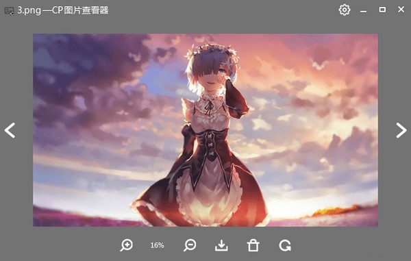CP图片查看器是十分简易的一个图片查看工具,没有过多的功能设置,只提供了上一张、下一张、放大缩小及删除这些功能,都比较基础,您可以利用它查看jpg、png、ico、gif等格式的图像文件,而且软件体积也很小巧,不会占用电脑内存,可以放心使用,需要的话可以试试~