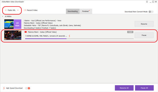 该软件支持批量下载。您可以让此应用在后台运行以执行下载任务,并在YouTube上观看更多精彩视频。您可以将下载任务一个接一个地手动添加到“粘贴网址”空白中。