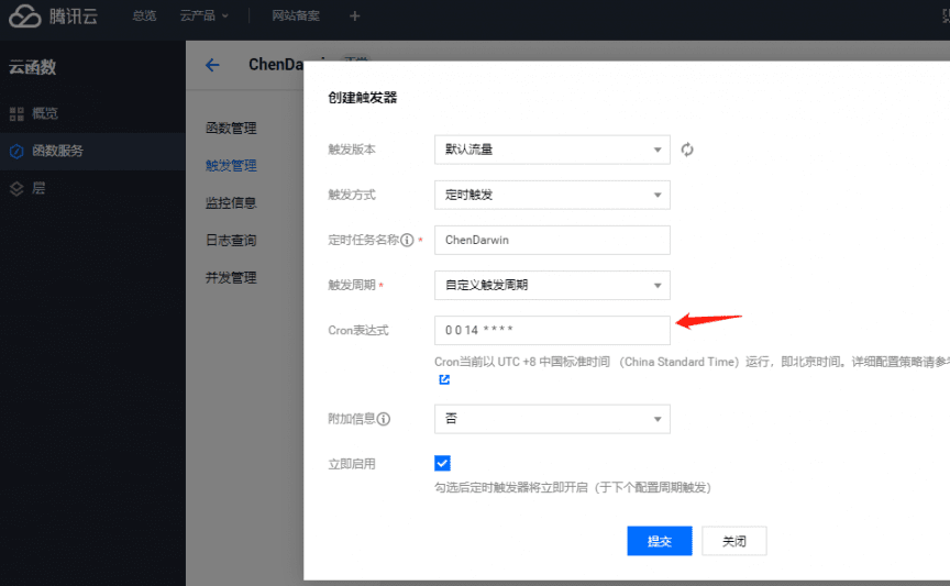 备注:定时任务名称一定要和你创建的函数名称一样!