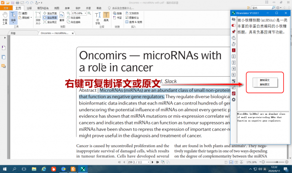 c、文档中选中一段话(或一句话或一个单次),然后双击右键出现翻译。
