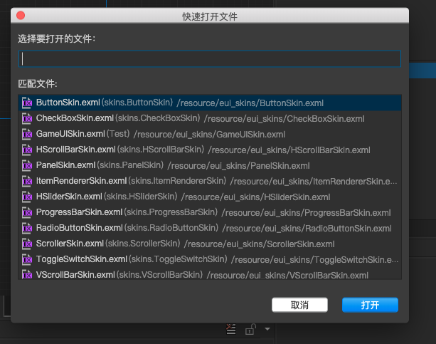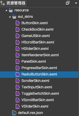 资源管理器面板 可以用来浏览和管理项目中的 EXML 皮肤文件。