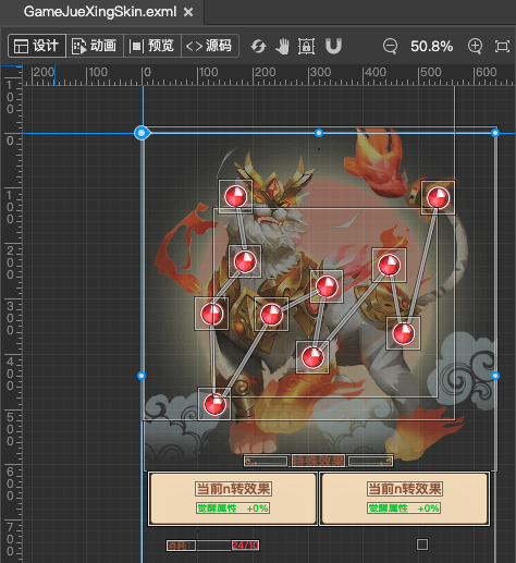 可以对游戏中的 Exml 皮肤进行可视化编辑、代码编辑和皮肤预览,。