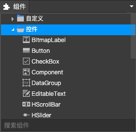 通过 组件面板,可以将默认的控件和自定义组件,拖拽到 UI 场景中去。