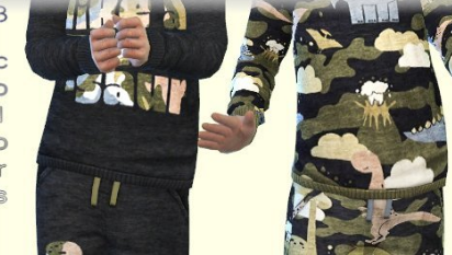 模拟人生4男童可爱恐龙服装MOD能够为模拟人生4中的男性儿童角色带来新的服装外观,补丁的作者在游戏中设计制作了非常多的人都在使用人用的一款好看的服装,包含多种颜色和款式,都带有很可爱的卡通元素,上面印着恐龙的图案印花,衣服的款式是比较宽松休闲的,小男孩穿起来效果很不错~